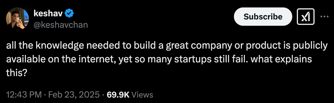 In any way, where that thinking got me to is that so much of the success of a startup is a function of the product/market that founders decide to tackle. And to get back to the initial tweet, there's not a lot of content out there on how to pick a good market.